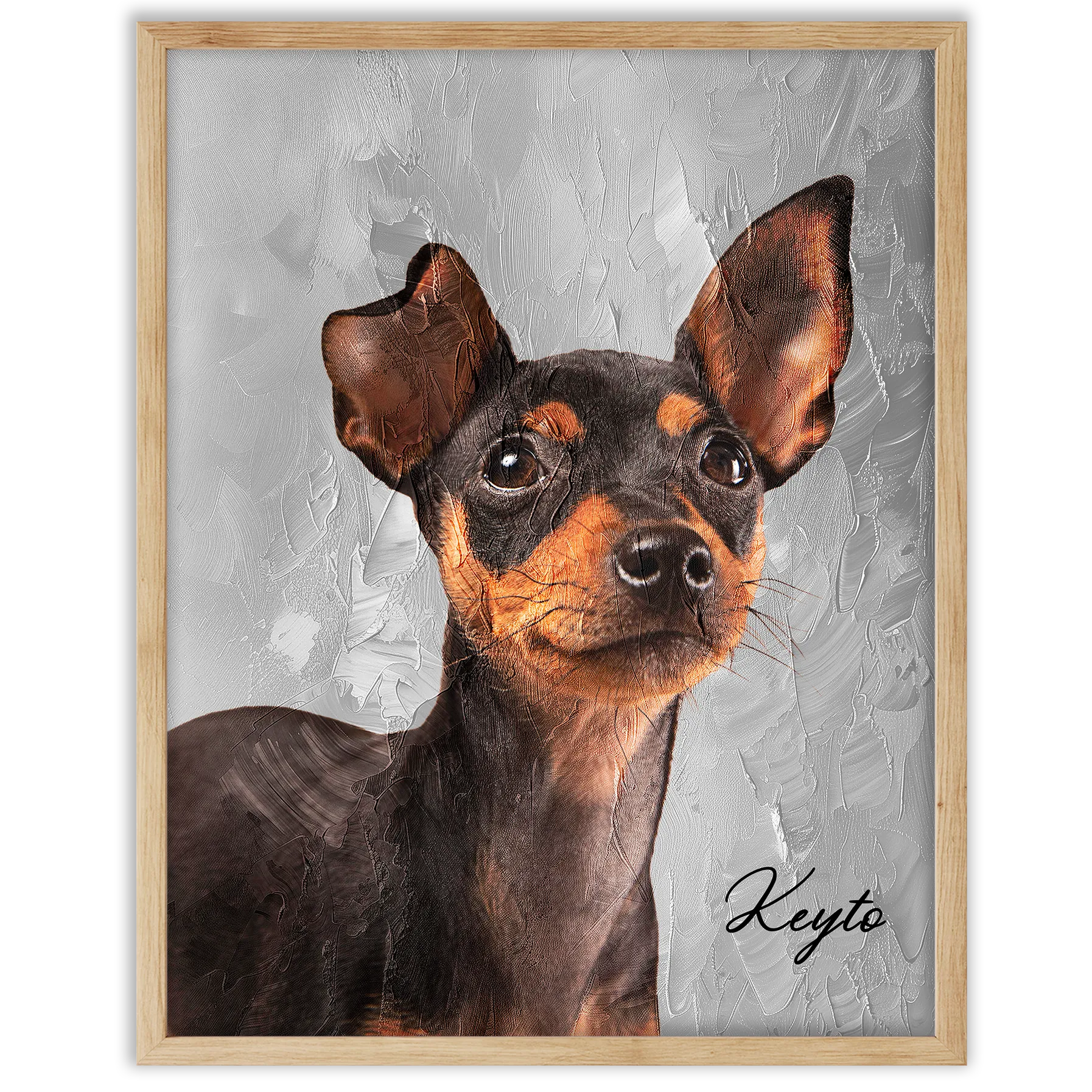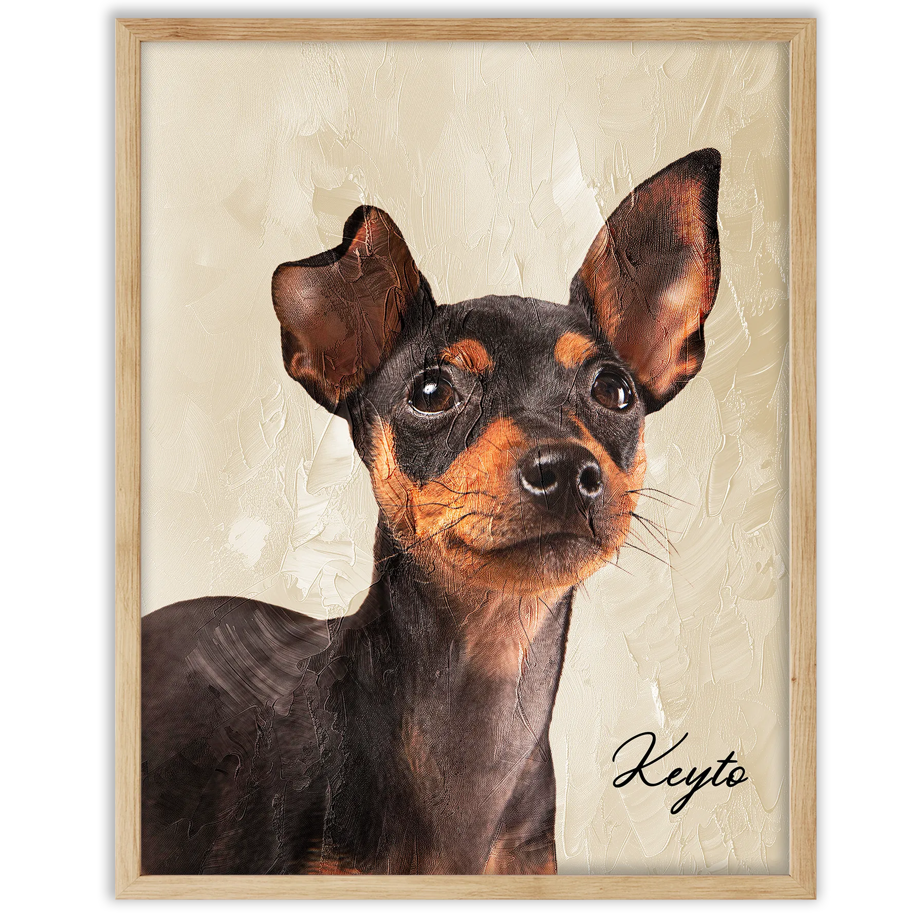 Formatos disponibles Archivo digital de alta resolución (Retrato enviado por mail para imprimir el cliente), lámina impresa sobre papel profesional, retrato enmarcado con marco de madera de calidad en blanco, negro o roble, listo para colgar, o lienzo de alta calidad con bastidor de 4 centímetros listo para colgar.